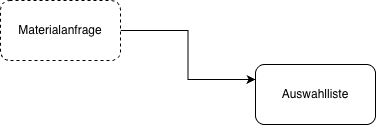 Dient die Auswahlliste der Materialübertragung können wir die Artikel aus einer Materialanfrage ziehen und im Anschluss eine Lagerbuchung durchführen.