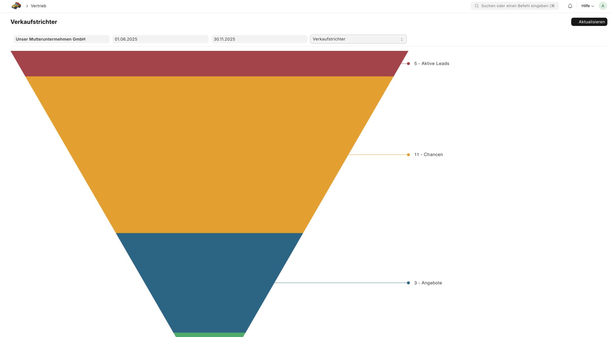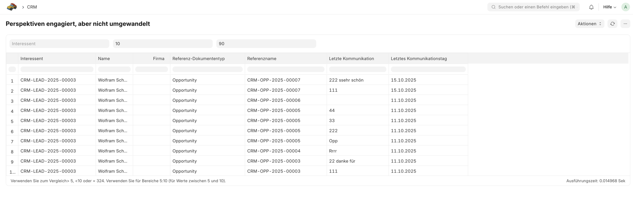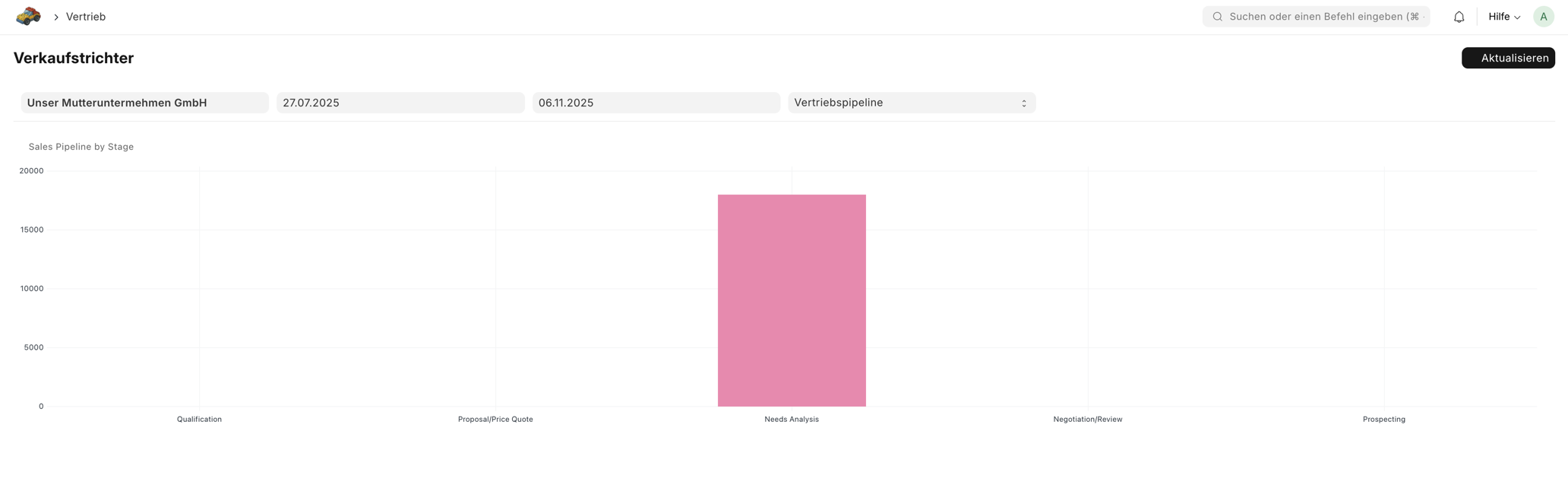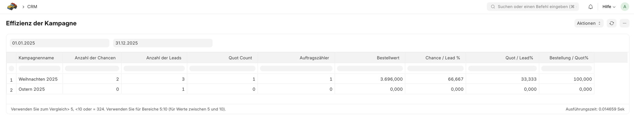 Auf dieser Seite führen wir alle Standardberichte des Moduls CRM auf und lernen wie die verschiednen Zahlen zu Stande kommen.
